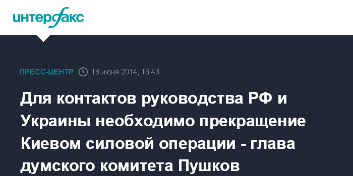 Для контактов руководства РФ и Украины необходимо прекращение Киевом силовой операции - глава думского комитета Пушков