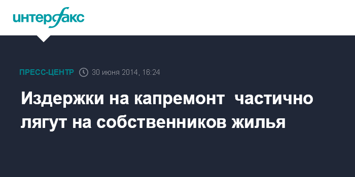 30 июня, Интерфакс – Для финансирования или софинансирования капитального ремонта изношенного жилья в России будут привлекать собственников. Об этом в понедельник на пресс-конференции в центральном офисе «Интерфакса» сообщил заместитель председателя комитета Госдумы РФ по жилищной политике и ЖКХ Александр Сидякин.