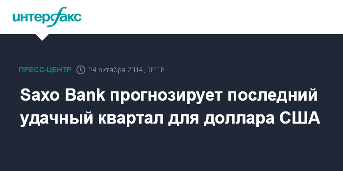 Saxo Bank прогнозирует последний удачный квартал для доллара США