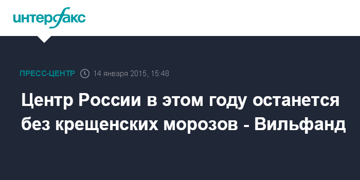 Москва. 14 января. ИНТЕРФАКС - Крещенских морозов в центре России этой зимой не будет, сообщил директор Гидрометцентра РФ Роман Вильфанд.