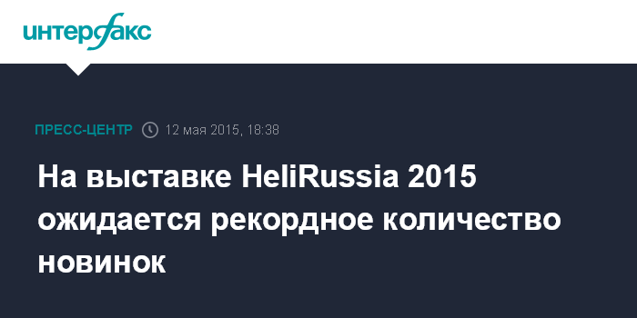 Москва. 12 мая. ИНТЕРФАКС-АВН - Организаторы 8-й Международной выставки вертолетной индустрии HeliRussia 2015, которая откроется 21 мая в "Крокусе Экспо", обещают, что она будет богата на новинки зарубежных и российских производителей.