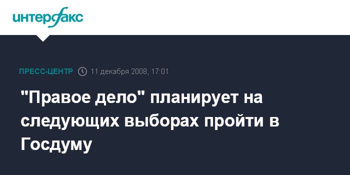 Москва. 11 декабря. ИНТЕРФАКС - Политическая организация "Правое дело" намерена участвовать в парламентских выборах 2011 году и рассчитывает преодолеть необходимый для прохождения в Госдуму барьер.