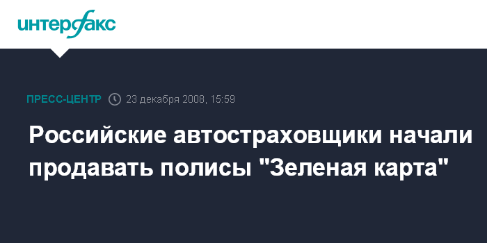 Москва. 23 декабря. ИНТЕРФАКС - Эти полисы действуют с 1 января 2009 года - момента начала операций в рамках международной системы в РФ. При этом, как уточнил С. Разуван, "водители, которые выедут за границу РФ еще в 2008 году, используя международные полисы, эмитированные зарубежными компаниями, смогут использовать их до окончания срока хождения такого полиса". С начала следующего года продажа международных полисов "Зеленая карта", эмитированных иностранными страховщиками, на территории РФ запрещается.
