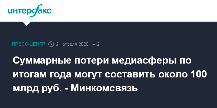Суммарные потери медиасферы по итогам года могут составить около 100 млрд руб. - Минкомсвязь
