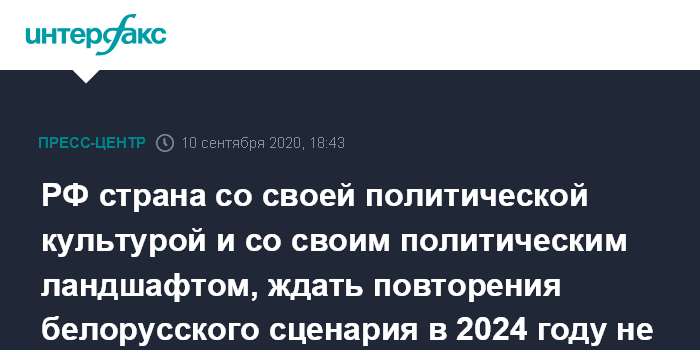 РФ страна со своей политической культурой и со своим политическим ландшафтом, ждать повторения белорусского сценария в 2024 году не приходится - Песков