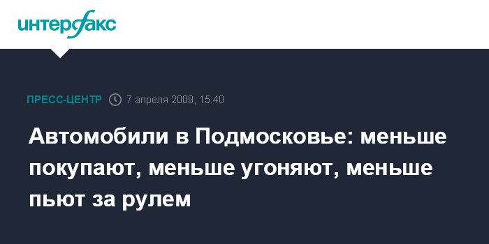 Автомобили в Подмосковье: меньше покупают, меньше угоняют, меньше пьют за рулем