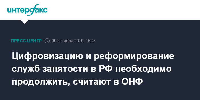 Москва. 30 октября. ИНТЕРФАКС - Начатая два года назад работа по цифровой трансформации сферы трудоустройства позволила по время пандемии коронавируса ставить на учет безработных дистанционно, заявил директор Координационного центра ОНФ по восстановлению экономики, председатель общественно-экспертного совета "Производительность труда и поддержка занятости" Илья Семин.