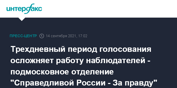 Трехдневный период голосования осложняет работу наблюдателей - подмосковное отделение "Справедливой России - За правду"