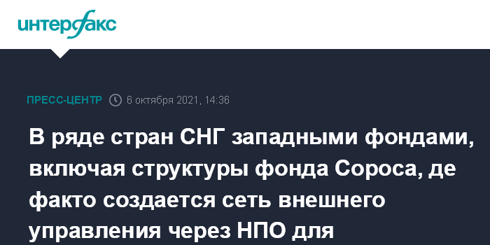 В ряде стран СНГ западными фондами, включая структуры фонда Сороса, де факто создается сеть внешнего управления через НПО для продвижения идей интеграции в НАТО и отдаления от России - молдавский эксперт