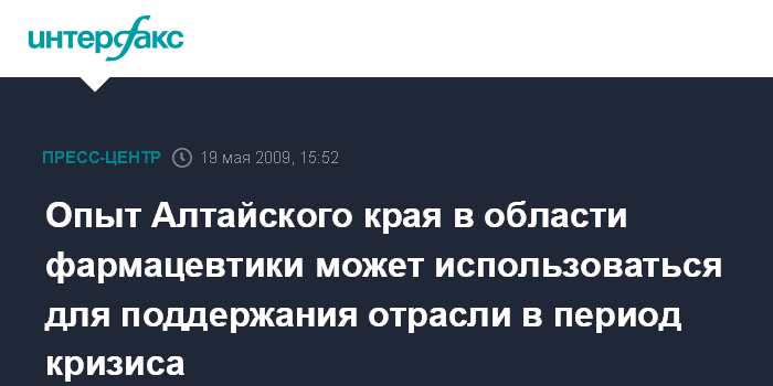Опыт Алтайского края в области фармацевтики может использоваться для поддержания отрасли в период кризиса