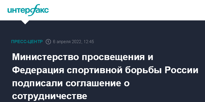 Соглашение о сотрудничестве между ФГБУ "Федеральный центр организационно-методического обеспечения физического воспитания" министерства просвещения РФ и Общероссийской общественной организацией "Федерация спортивной борьбы России" было подписано в среду в центральном офисе "Интерфакса"
