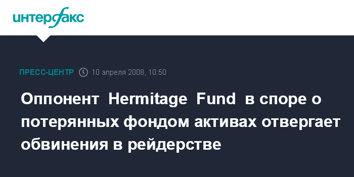 Оппонент Hermitage Fund в споре о потерянных фондом активах отвергает обвинения в рейдерстве