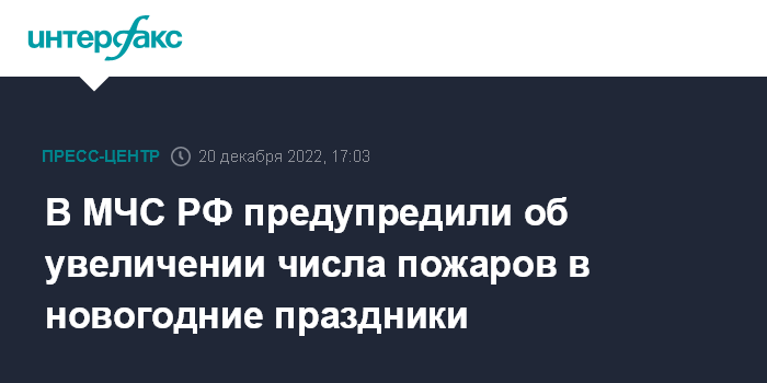 В МЧС РФ предупредили об увеличении числа пожаров в новогодние праздники