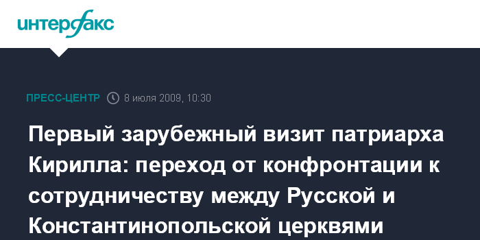 Первый зарубежный визит патриарха Кирилла: переход от конфронтации к сотрудничеству между Русской и Константинопольской церквями