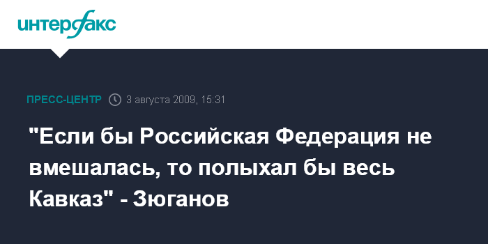 "Если бы Российская Федерация не вмешалась, то полыхал бы весь Кавказ", - заявил Г.Зюганов на пресс-конференции в центральном офисе "Интерфакса" в понедельник.