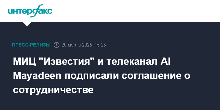 МИЦ "Известия" и телеканал Al Mayadeen подписали соглашение о сотрудничестве