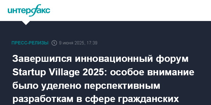Завершился инновационный форум Startup Village 2025: особое внимание было уделено перспективным разработкам в сфере гражданских беспилотных авиационных систем, представленных на выставке технологических проектов Startup Bazaar