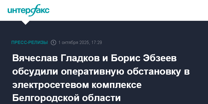 Вячеслав Гладков и Борис Эбзеев обсудили оперативную обстановку в электросетевом комплексе Белгородской области