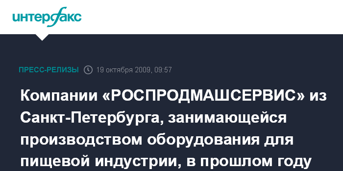 Компании «РОСПРОДМАШСЕРВИС» из Санкт-Петербурга, занимающейся производством оборудования для пищевой индустрии, в прошлом году исполнилось 10 лет.