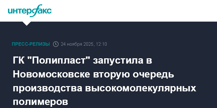 21 ноября 2025 года на флагманском заводе Группы компаний — "Полипласт Новомосковск" — запущена вторая очередь единственного в России комплекса по производству высокомолекулярных полимеров. Запуск первой очереди состоялся в 2024 году.