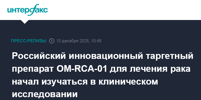 Российский инновационный таргетный препарат OM-RCA-01 для лечения рака начал изучаться в клиническом исследовании