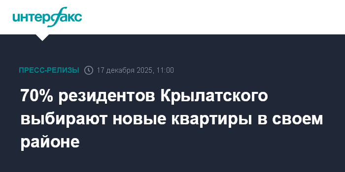 70% резидентов Крылатского выбирают новые квартиры в своем районе