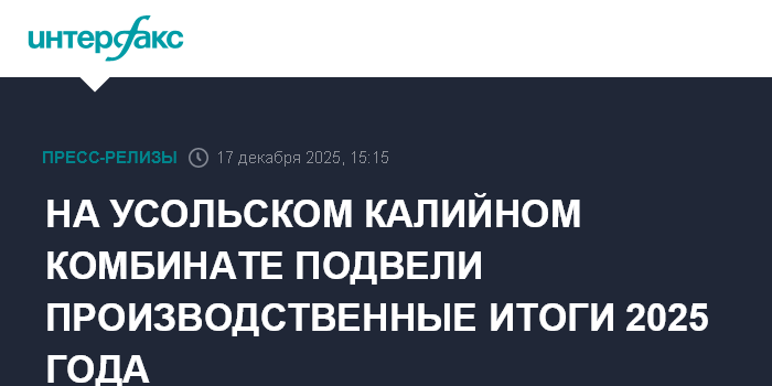 НА УСОЛЬСКОМ КАЛИЙНОМ КОМБИНАТЕ ПОДВЕЛИ ПРОИЗВОДСТВЕННЫЕ ИТОГИ 2025 ГОДА