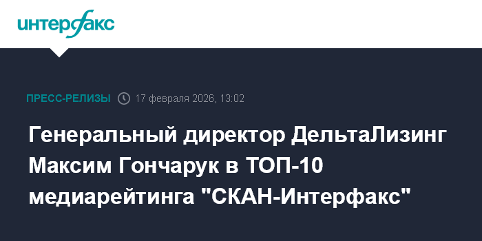 Генеральный директор ДельтаЛизинг Максим Гончарук в ТОП-10 медиарейтинга "СКАН-Интерфакс"