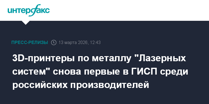 3D-принтеры по металлу "Лазерных систем" снова первые в ГИСП среди российских производителей