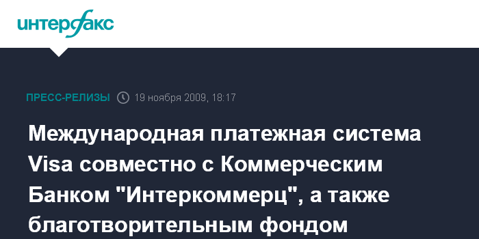 Международная платежная система Visa совместно с Коммерческим Банком "Интеркоммерц", а также благотворительным фондом "Поделись Теплом" и Детской Галереей "Якиманка" представляют новую благотворительную карту Visa "Поделись теплом"