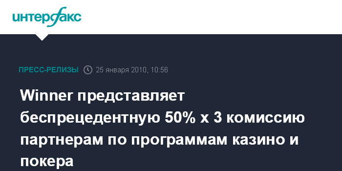 Winner представляет беспрецедентную 50% х 3 комиссию партнерам по программам казино и покера