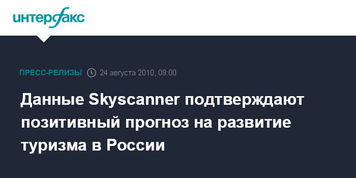 Данные системы Skyscanner, ищущей дешевые авиабилеты , подтверждают положительную тенденцию на российском туристическом рынке. В последние 6 месяцев (с февраль по июль 2010 года) трафик российской версии сайта увеличился на 138%. Менеджер по работе с рынком России и СНГ Дмитрий Коновалов отмечает традиционную для России высокую долю спроса на внутренние авиаперелеты: «В РФ на внутренние направления приходится до 36% всех поисковых запросов, в то время как в Великобритании этот показатель составляет 8%, а в Германии – всего 6%».