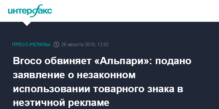 26 августа - Broco обвиняет «Альпари»: подано заявление о незаконном использовании товарного знака в неэтичной рекламе
