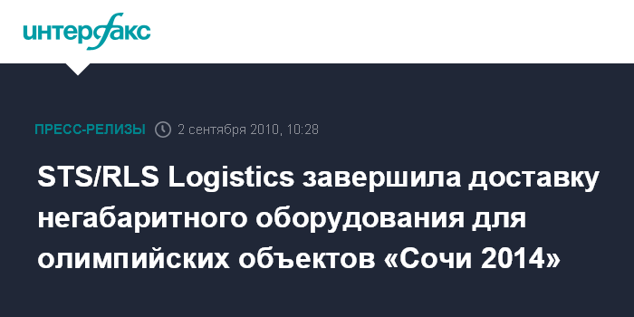 STS/RLS Logistics завершила доставку негабаритного оборудования для олимпийских объектов «Сочи 2014»