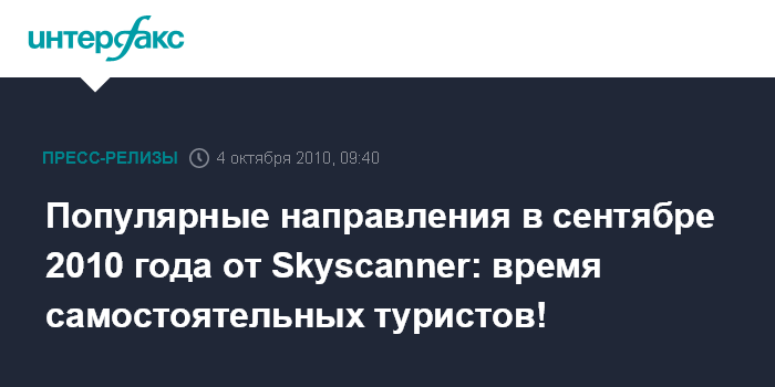 Популярные направления в сентябре 2010 года от Skyscanner: время самостоятельных туристов!