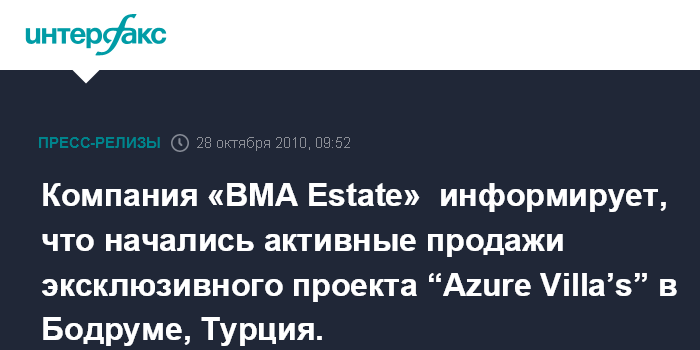 28 октября – Компания «BMA Estate» – агентство элитной недвижимости – информирует, что начались активные продажи эксклюзивного проекта “Azure Villa’s” в Бодруме, Турция.