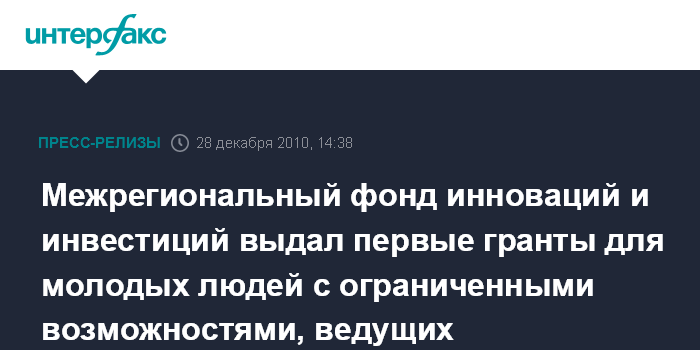Межрегиональный фонд инноваций и инвестиций, созданный для поддержки инновационной и инвестиционной деятельности в сфере малого и среднего предпринимательства, начал предоставление на конкурсной основе грантов для молодых людей с ограниченными возможностями, ведущих деятельность в сфере инноваций.