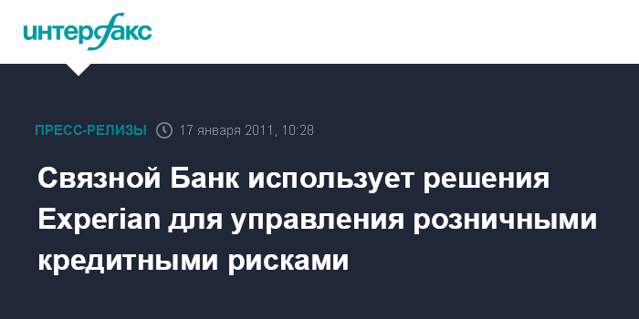• С июля 2010 года при рассмотрении заявок на предоставление кредитных продуктов Связной Банк использует систему управления стратегиями New Business Strategy Management от Experian.