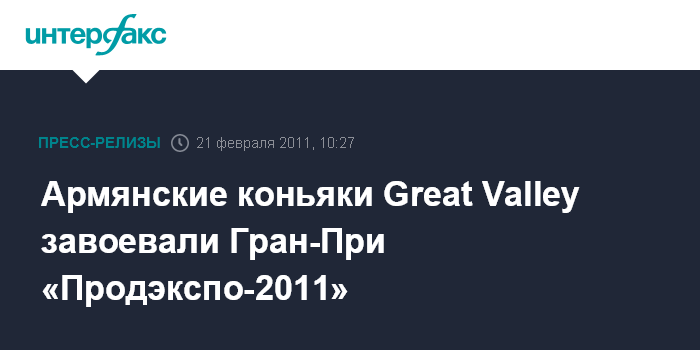 21 февраля - Армянские коньяки Great Valley триумфально выступили на авторитетном дегустационном конкурсе крупнейшей международной выставки «Продэкспо-2011».
