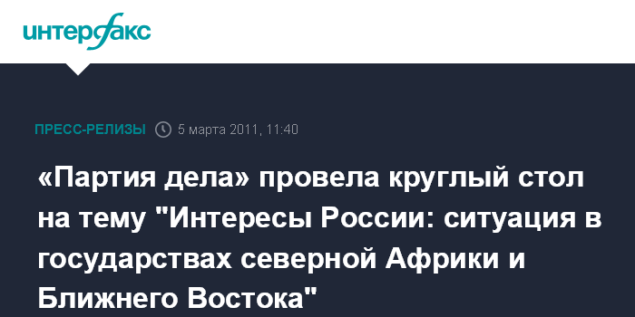 05 марта - «Партия дела» провела круглый стол на тему "Интересы России: ситуация в государствах северной Африки и Ближнего Востока"