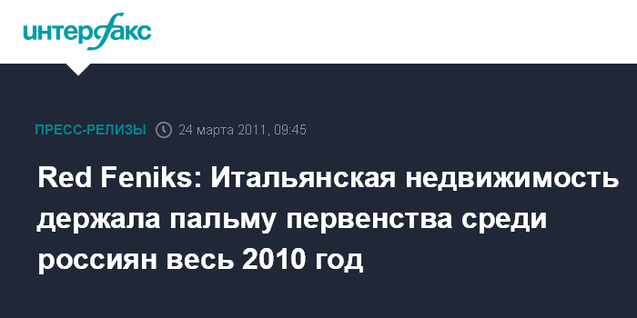 Red Feniks: Итальянская недвижимость держала пальму первенства среди россиян весь 2010 год