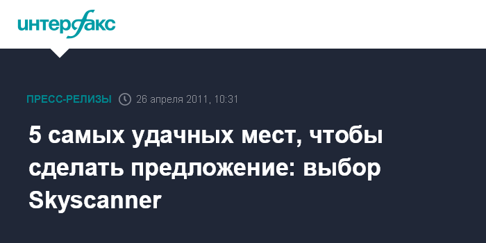 Для тех, кто как раз задумывается о том, чтобы сделать предложение, но пока не знает, где и как, предлагающая поиск дешевых авиабилетов Skyscanner, выбрала пять лучших вариантов.