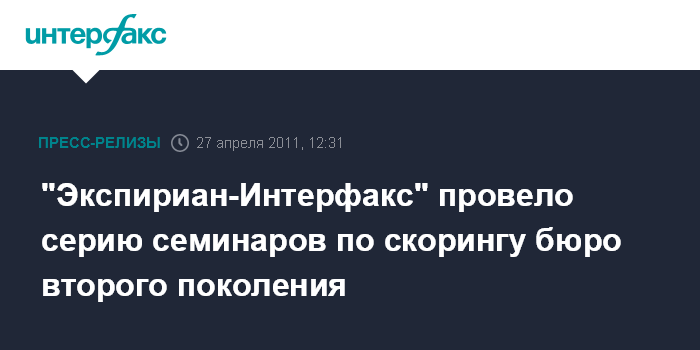 27 апреля - Бюро кредитных историй "Экспириан-Интерфакс" провело серию семинаров для банков, которые проявили интерес к разработанному бюро в начале 2010 года скорингу бюро второго поколения.
