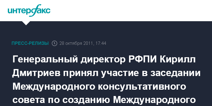 28 октября – Сегодня глава Российского фонда прямых инвестиций (РФПИ) Кирилл Дмитриев принял участие в заседании Международного консультативного совета по созданию Международного финансового центра в Москве