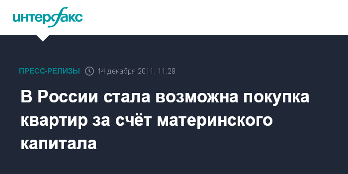 14 декабря - В России стала возможна покупка квартир за счёт материнского капитала