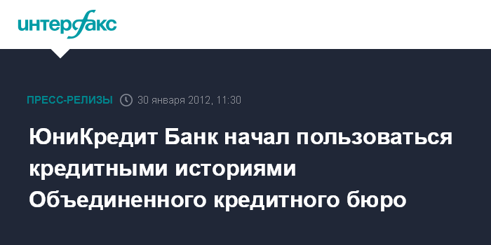 30 января - ЮниКредит Банк начал активно использовать кредитные отчеты Объединенного кредитного бюро для принятия решений по розничным кредитам, в частности автокредитам.
