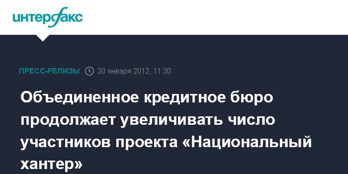 Объединенное кредитное бюро продолжает увеличивать число участников проекта «Национальный хантер»