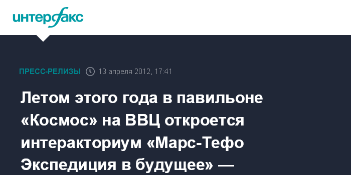 Летом этого года в павильоне «Космос» на ВВЦ откроется интеракториум «Марс-Тефо Экспедиция в будущее» — масштабный многоформатный образовательный проект
