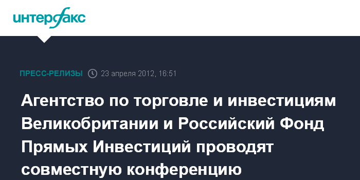 Агентство по торговле и инвестициям Великобритании и Российский Фонд Прямых Инвестиций проводят совместную конференцию «Инвестиции в Россию»