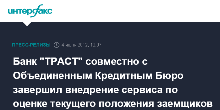 Банк "ТРАСТ" совместно с Объединенным Кредитным Бюро завершил внедрение сервиса по оценке текущего положения заемщиков "ТРИГГЕРЫ"